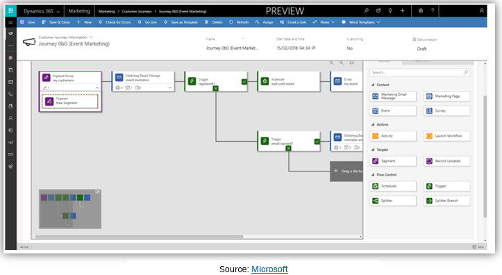 With customers becoming more informed and connected than ever before, the balance of power has shifted. Organizations no longer have control over their relationships with customers; it is the customers who are calling the shots. So, ensuring every customer experience is exceptional throughout the lifetime of the relationship has become imperative; this includes completing a journey map for each stage of the relationship – awareness, consideration, purchase and retention in addition to ongoing service as well as after-care support. Dynamics 365 enables you to create customer journeys from scratch by choosing from a collection of templates. Using the Dynamics 365 customer journey, not only can you only engage with customers across various touch points, but also continuously track and monitor each engagement to persistently improve customer experience and increase revenue and embark on the road to success.